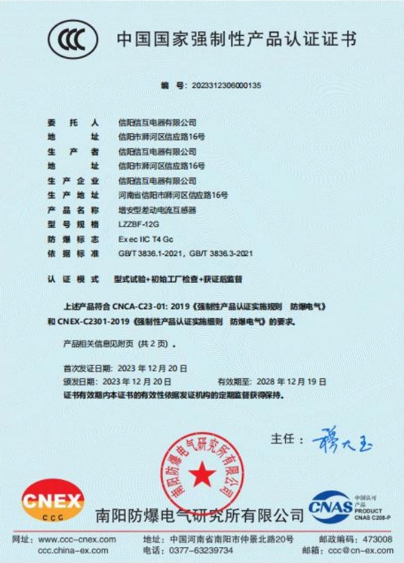 為滿足客戶大功率高壓電機差動保護(hù)需求及適應(yīng)新的國標(biāo)和市場政策變化,經(jīng)過不懈努力和嚴(yán)格審核,我司成功取得了LZZBF-12G系列10KV增安型差動電流互感器3C國家強制認(rèn)證證書!