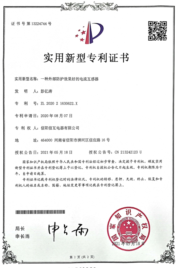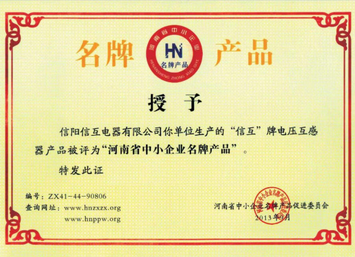 河南信陽信互電器有限公司(電力互感器制造廠)是機械、電力行業(yè)生產(chǎn)企業(yè),“信互”牌互感器系列產(chǎn)品被評為“互感器”。曾擁有制造計量器具許可證、計量器具合格證書、防爆電氣設(shè)備合格證,企業(yè)被推薦為《全國城鄉(xiāng)建設(shè)與改造所需主要設(shè)備產(chǎn)品及生產(chǎn)企業(yè)》。是《變壓器》、《互感器》、《組合式互感器》國標(biāo)導(dǎo)則宣貫的單位之一、輸變電協(xié)會互感器分會會員,報沈陽變壓器研究所備案的互感器生產(chǎn)單位。擁有“信互”牌注冊商標(biāo)。